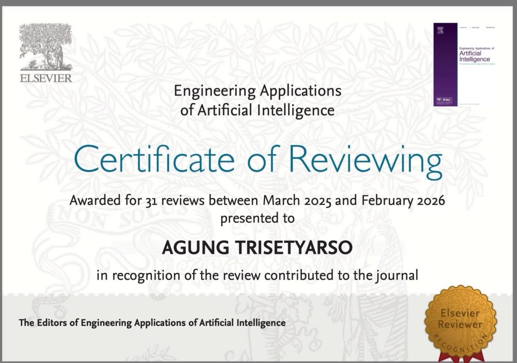 31st certificates of ELSEVIER Journal of Engineering Applications of Artificial Intelligence (United Kingdom, Q1 in Artificial Intelligence,