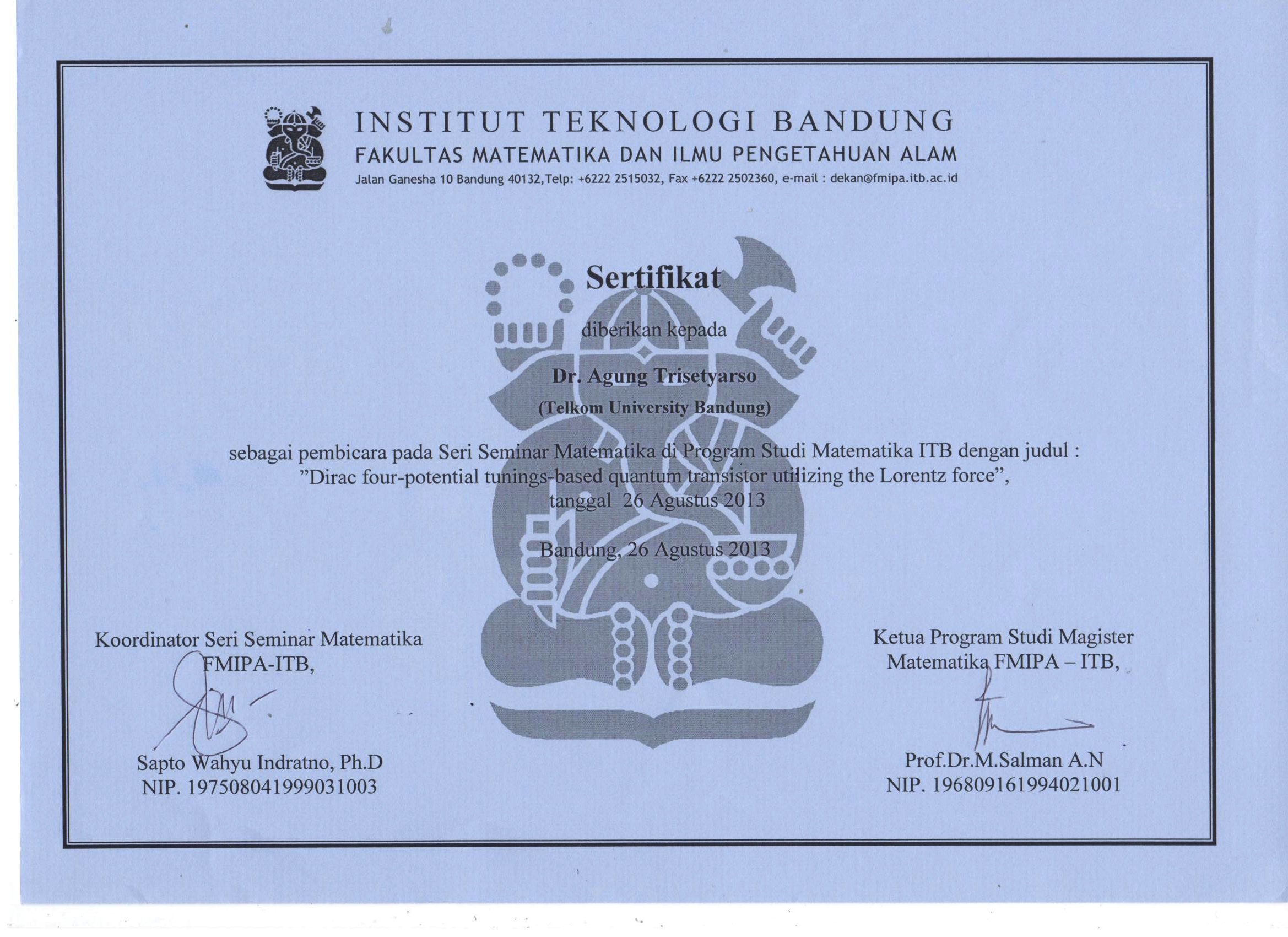 Terimakasih terhatur untuk Matematika Institut Teknologi Bandung atas kesempatan yang diberikan.