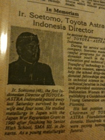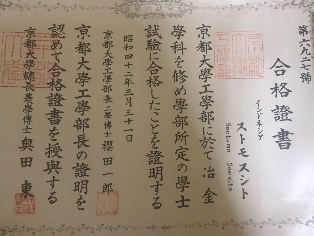 Publikasi Almarhum Ir. Soetomo Soesito: MIKI, M., SOESITO, S., ASAKI, Z., & KONDO, Y. (1968). On the Comminution of High Carbon Ferrochrome. Tetsu-to-Hagane, 54(4), 300-306.
