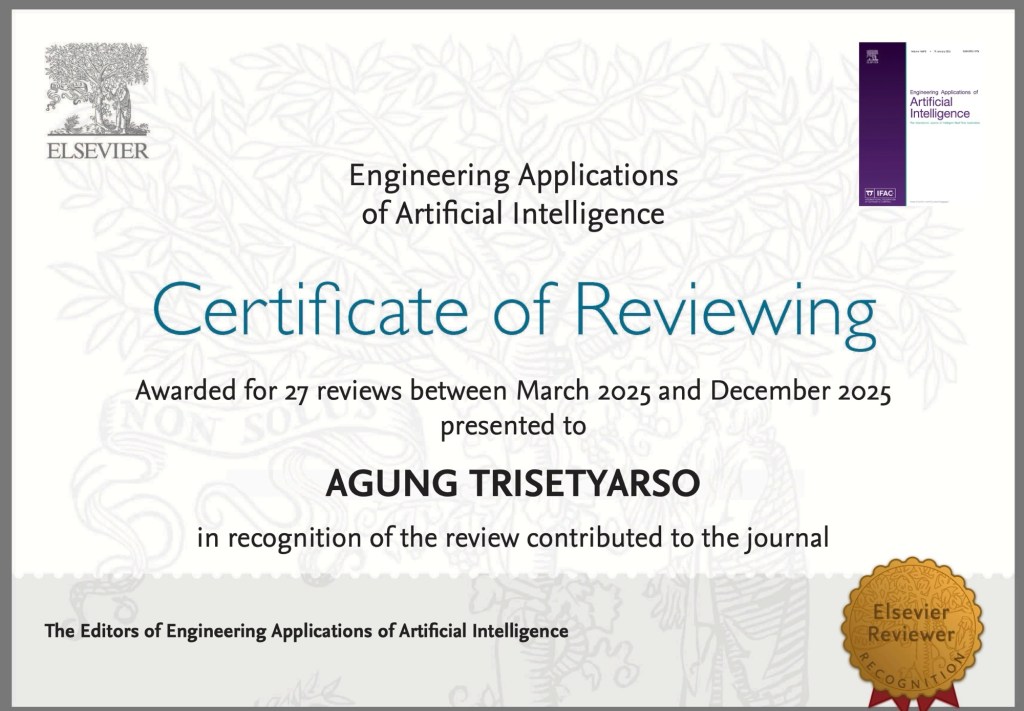 27th certificates of ELSEVIER Journal of Engineering Applications of Artificial Intelligence (United Kingdom, Q1 in Artificial Intelligence,
