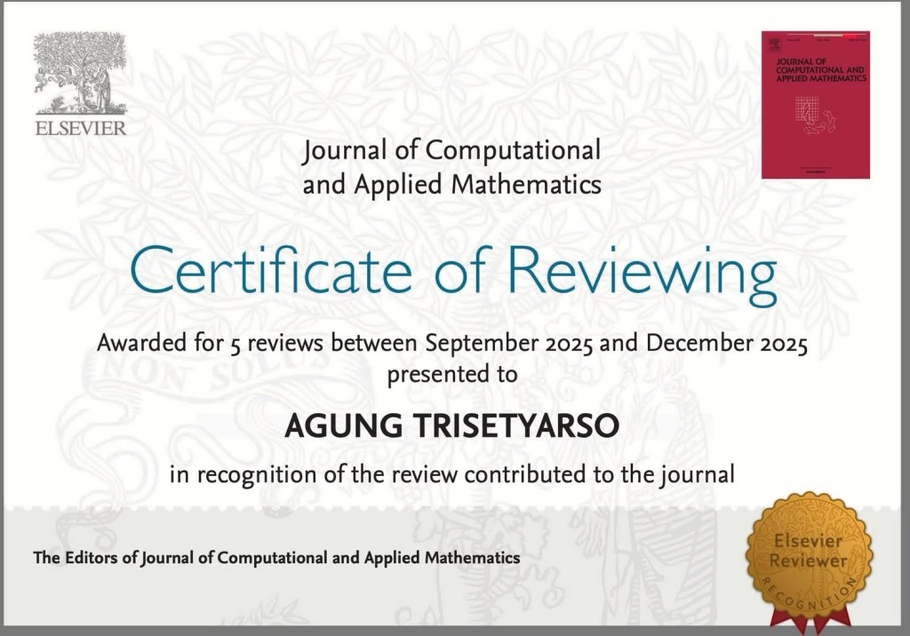5th certificate of Elsevier Journal of Computational and Applied Mathematics (Netherlands, H-index 149, SJR: 0.688; Q2 in Applied Mathematics and Computational Mathematics)