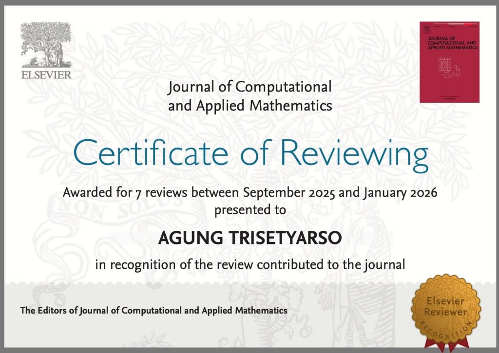 7th certificate of Elsevier Journal of Computational and Applied Mathematics (Netherlands, H-index 149, SJR: 0.688; Q2 in Applied Mathematics and Computational Mathematics)