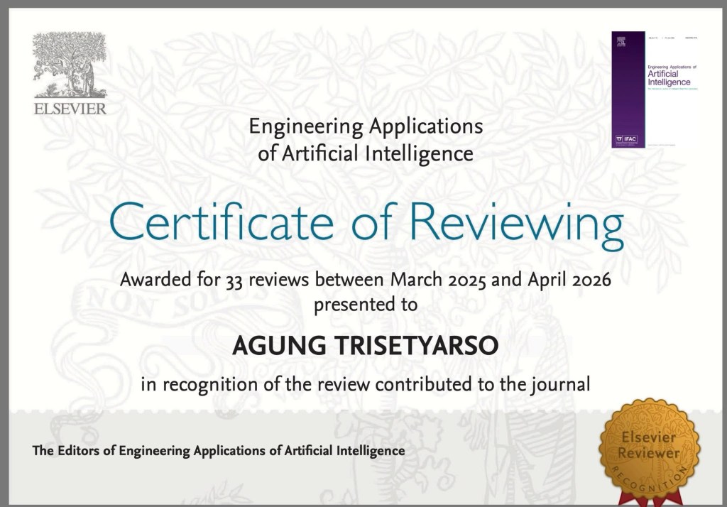 Thank you very for much to Elsevier Journal of Engineering Applications of Artificial Intelligence (United Kingdom; SJR 1.652, Q1 in Artificial Intelligence, Control and Systems Engineering, and Electrical and Electronic Engineering) for reviewer certificate (33rd reviews )
