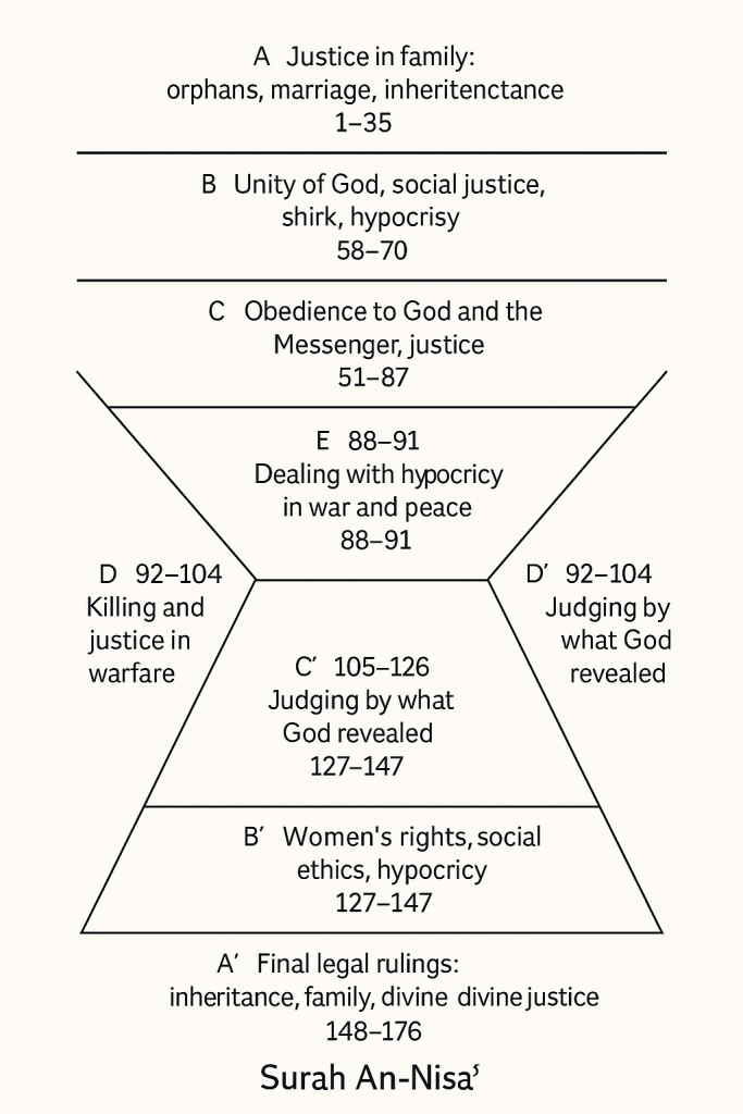 Surah An-Nisāʾ has a mirror structure that reflects its legal and ethical focus inward toward a central turning point.